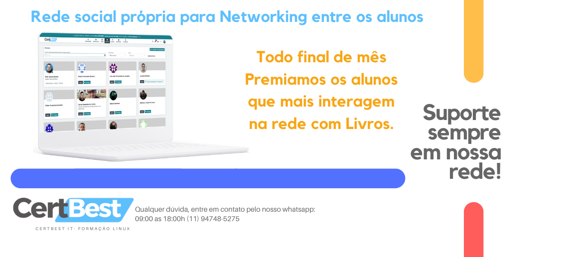 Não sabe nada de Linux ou esta começando? Quando você se matrícula o primeiro contato é direto com o professor Juliano Ramos via whatsapp, após uma avaliação prévia do seu conhecimento já criamos um roteiro de estudo. Temos cursos do Básico ao Avançado de Linux e servidores.